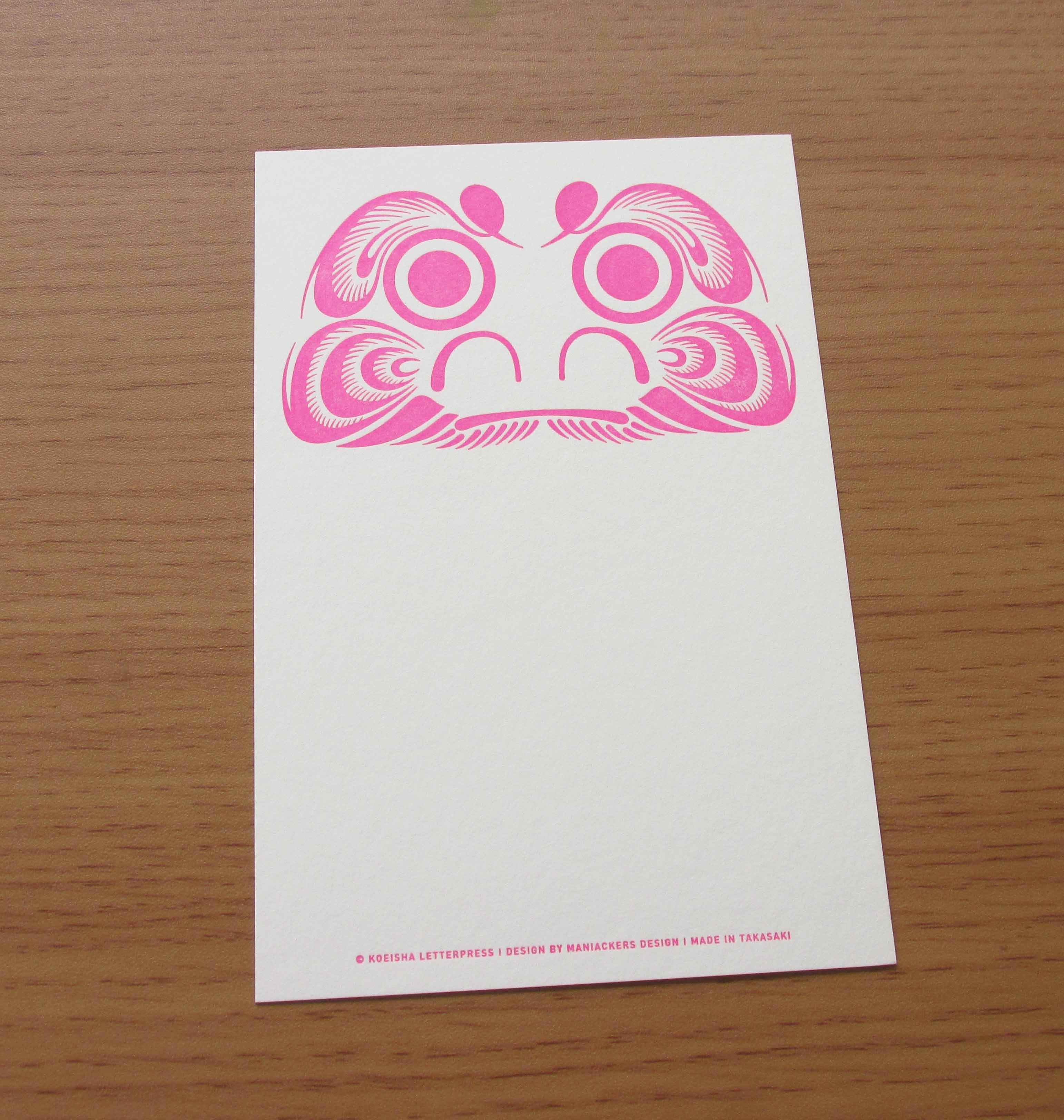 活版印刷(Letterpress)で作成しただるまポストカードです。